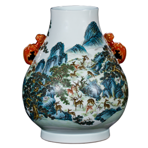 仿清乾隆粉彩百鹿紋雙耳尊